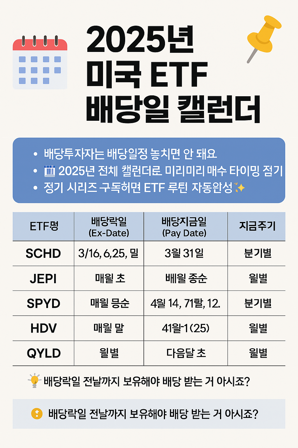 🇺🇸 2025년 미국 대표 ETF 배당일정 캘린더